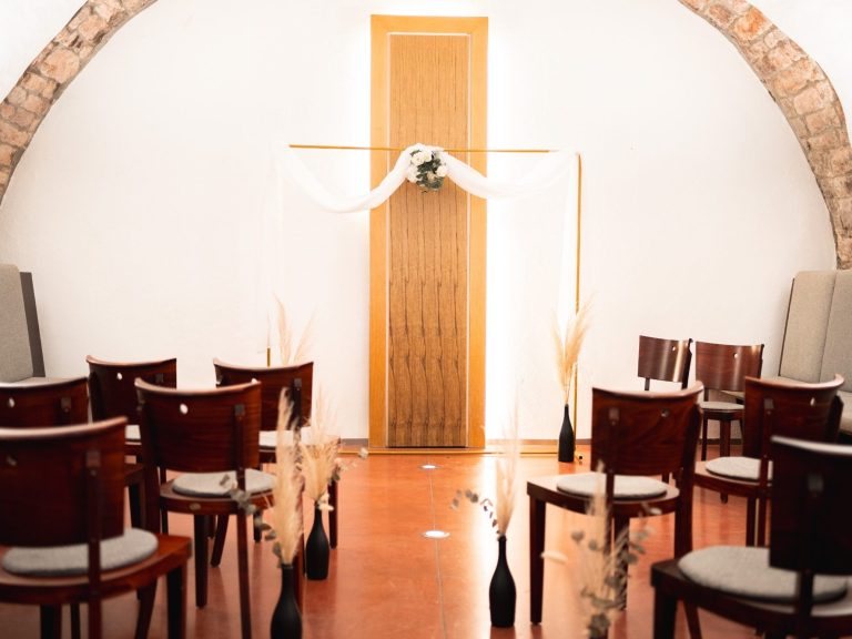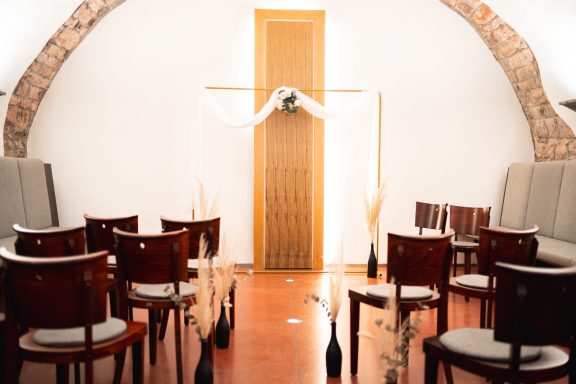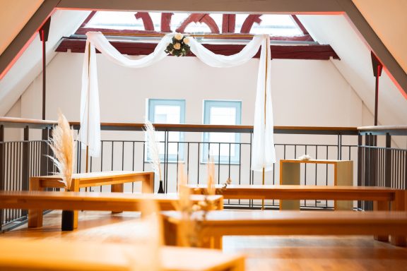 Im Gewölbekeller, schnuckelig und sehr besonders wird Eure Trauung zu etwas ganz besonderem! Oder wenn Ihr sowieso in der Eventlocation feiert, könnt Ihr Euch auch auf der Galerie trauen lassen. In einem wunderschönen Ambiente, mit Kronleuchtern, perfektem Licht und Sektempfang direkt daneben, wird Eure Trauung zu einem besonderen Highlight!